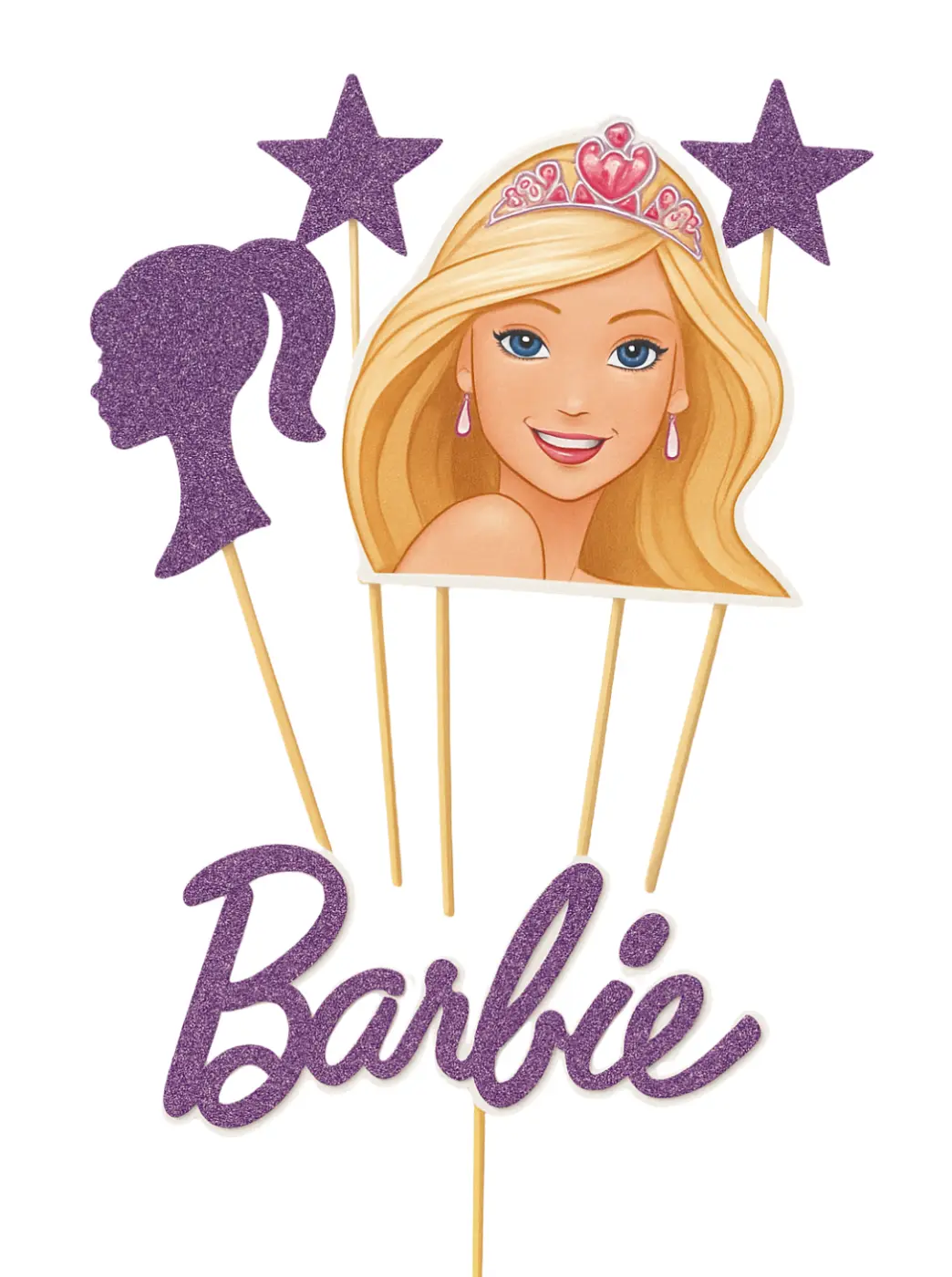 Bring sparkle and magic to your child’s special day with this Personalized Barbie Glitter Birthday Topper Set. Designed with a dazzling pink glitter finish, this coordinated set includes: A Barbie silhouette topper customized with your child’s name in elegant cursive. A royal crown topper featuring the birthday age (perfect for milestone celebrations like a 4th birthday). A “Happy Birthday Barbie” topper showcasing Barbie’s iconic blonde hair, tiara, and pink earrings. A Barbie silhouette topper customized with your child’s name in elegant cursive. A royal crown topper featuring the birthday age (perfect for milestone celebrations like a 4th birthday). A “Happy Birthday Barbie” topper showcasing Barbie’s iconic blonde hair, tiara, and pink earrings. Several glitter star wands to add extra shine and charm to cakes, cupcakes, or party décor.