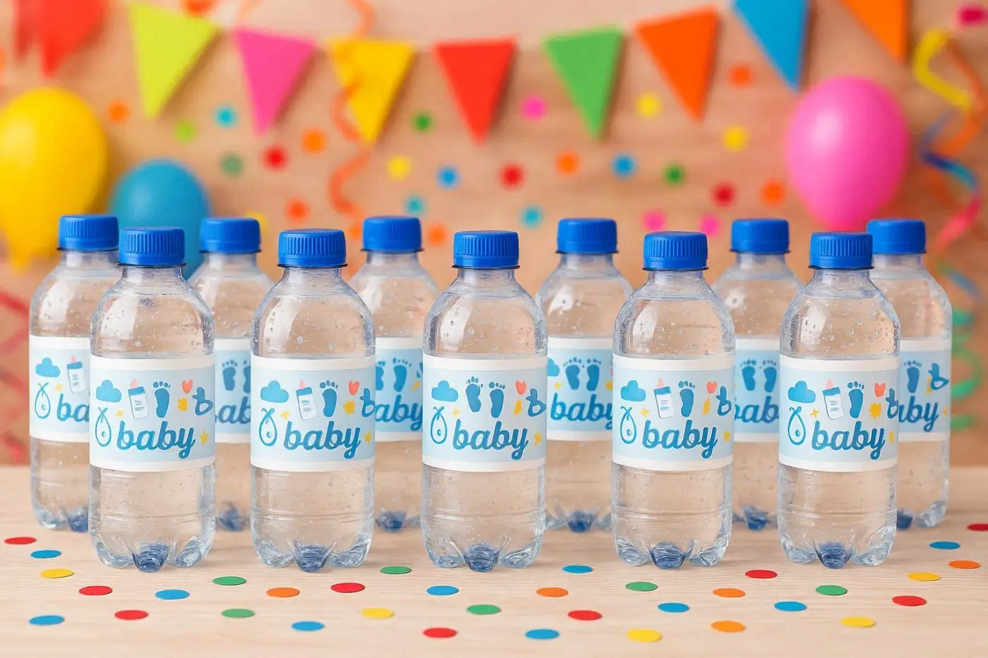 Set of 20 Customizable wrappers designed to enhance and brighten up your water or cold drink bottles for a princess-themed party. This decorative accessory adds a charming and elegant touch to your beverages, making them perfectly aligned with the royal celebration theme. Dimensions: 950mmx620mm water bottle not included